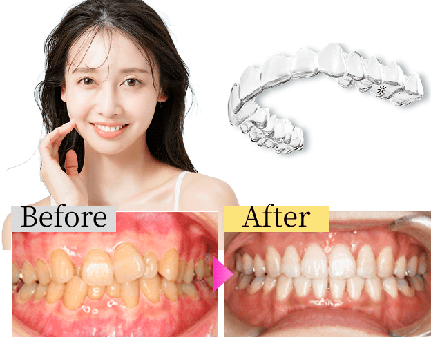歯並びが原因によるガミースマイルは、矯正治療によって改善可能な場合があります。咬み合わせが深い過蓋咬合(ディープバイト)ですが、こちらももちろん、マウスピース型矯正装置による矯正治療で改善が可能な不正咬合です。